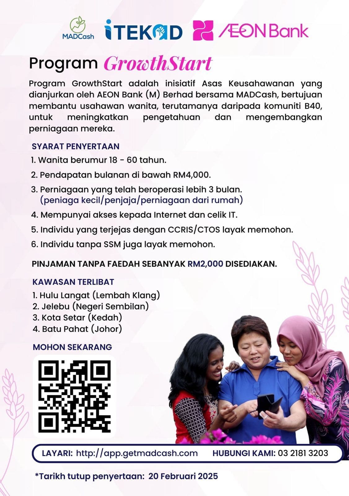 ‘GrowthStart’ is developed together by AEON Bank and MADCash, a local fintech enabler focusing on female empowerment. As a microentrepreneurial kickstarter programme, it aims to coach and nurture the business growth of 100 female entrepreneurs, while helping them to optimise on digital tools and financial technology. The programme is set to run from February 2025 until August 2026 and will be rolled out in three batches with participants from Selangor, Kedah, Negeri Sembilan and Johor.