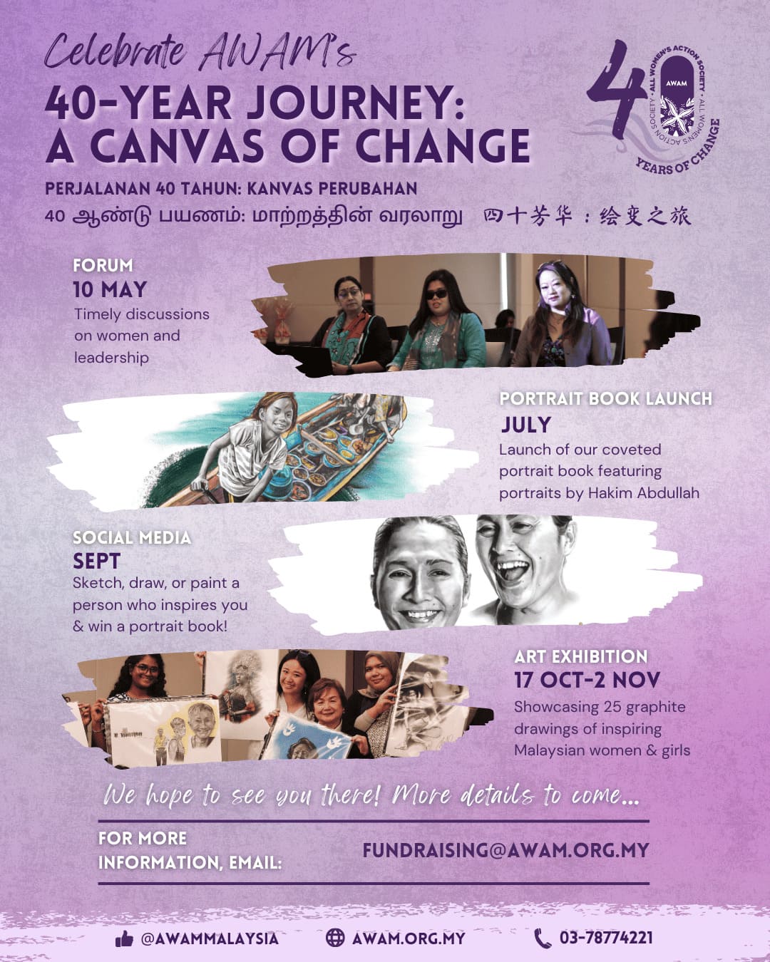 As AWAM celebrates 40 years of change, it calls on the public to stand in solidarity. Contributions to “A Canvas of Change” will help AWAM sustain its advocacy, expand their services, and continue building a Malaysia where everyone, regardless of gender, is free from violence and discrimination.