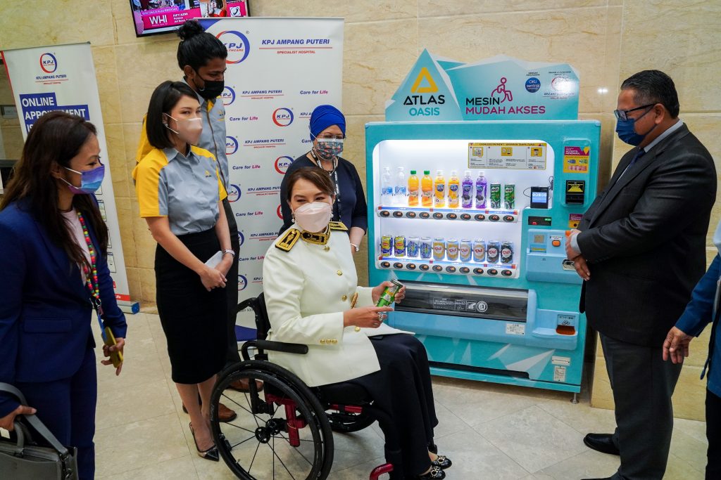 ATLAS Vending, in collaboration with OKU Sentral, rolled out Malaysia’s first series of Accessible Vending Machines today, with KPJ Healthcare Berhad (“KPJ Healthcare”) as an exclusive hospital partner for the launch, which will see the Accessible machines available at selected KPJ hospitals, Pusat Daya Klang and Pusat Latihan Perindustrian dan Pemulihan Bangi.