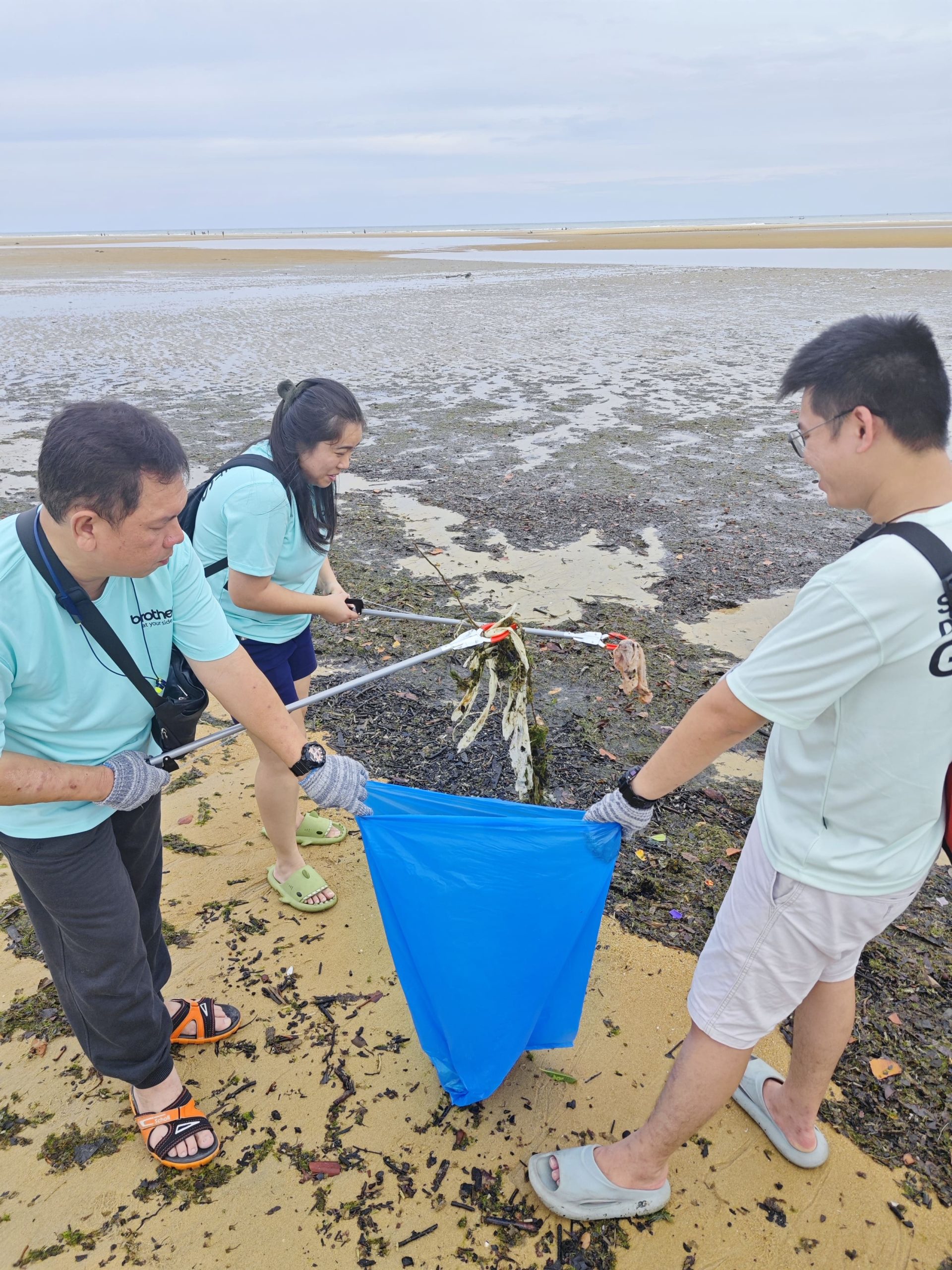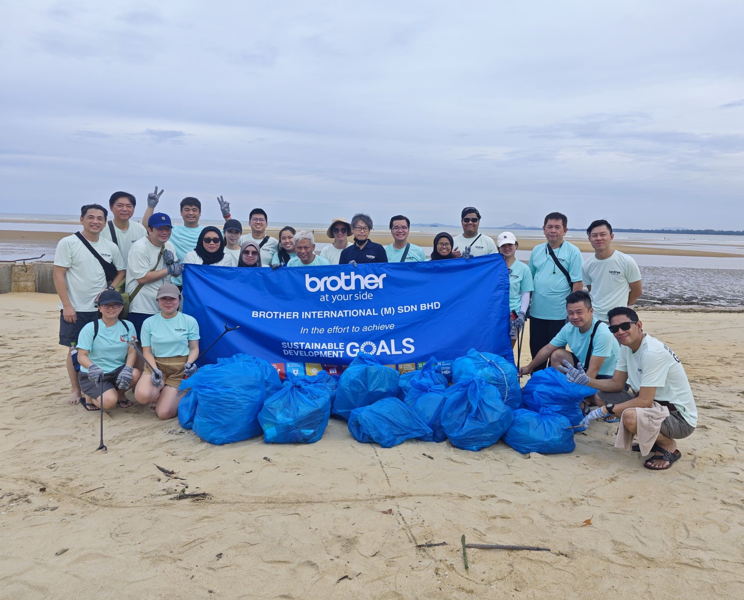 Volunteers from Brother International (Malaysia) Sdn Bhd. participating in a beach clean-up initiative at Cherating beach