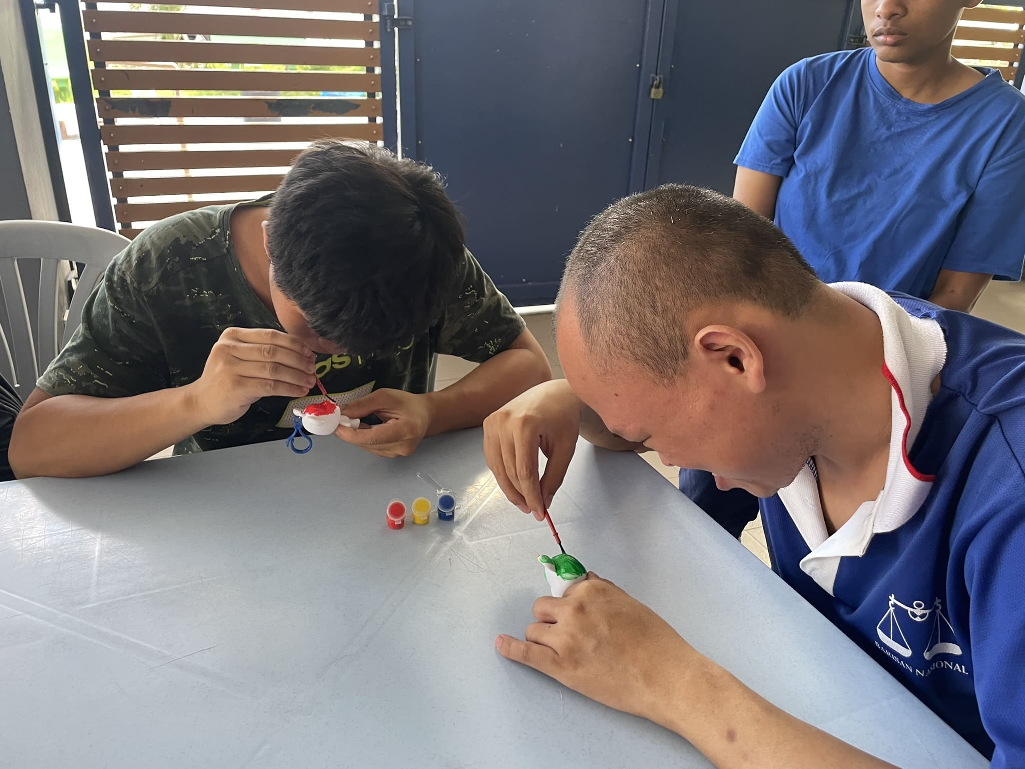 To foster meaningful interaction, the visit included a DIY keychain painting activity which was an immediate hit with the residents. The children’s creativity shone through, with one resident impressively completing 11 hand-painted keychains in under an hour, excited to share them with his friends and teachers. Another young artist proudly shared his own sketches, eventually gifting a signed drawing to one of the team members—a touching moment that left a lasting impression.