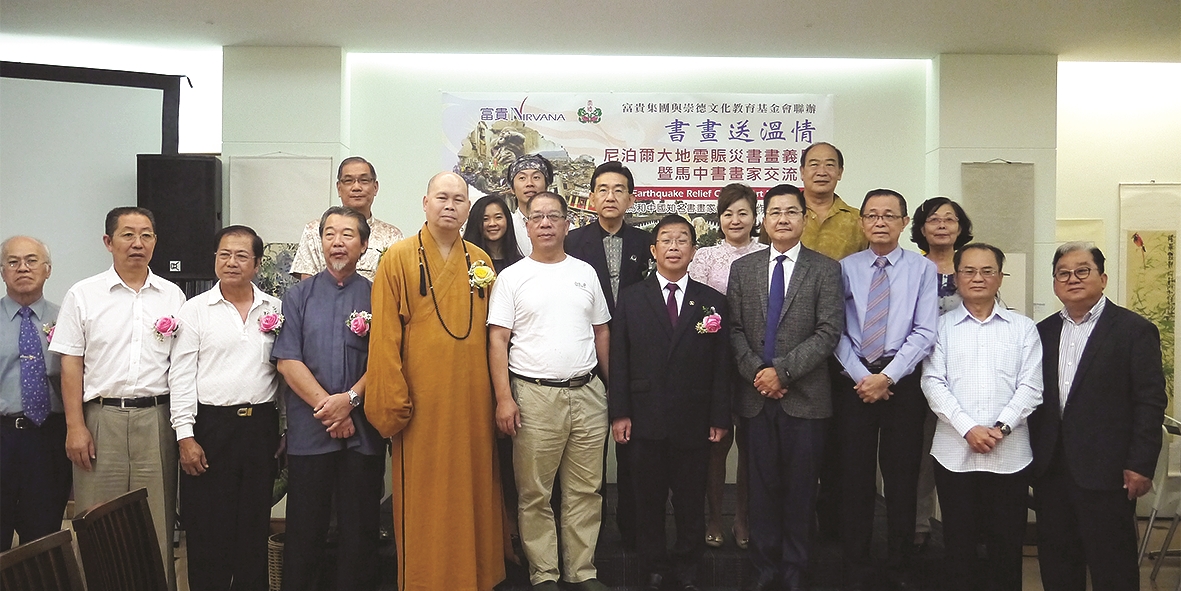 In an effort to help rebuild the homeland of the victims of the Nepal earthquake, Tan Sri Kong Hon Kong, Founder and Managing Director of Nirvana Asia Ltd. hosted a series of fund-raising art exhibition spresenting masterpieces by renowned artists from Malaysia and China. Representing their respective art and cultural associations, over 60 painters and calligraphers joined hands to officiate the ‘Reaching Towards You More Closely’Nepal Earthquake Disaster Relief Art Exhibition at Nirvana’s Chinese Calligraphy Stone Gallery in Semenyih, Selangor.