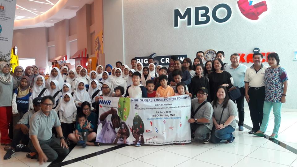 NNR Global Logistics (M) Sdn Bhd, a leading logistics solutions provider recently held a Corporate Social Responsibility (CSR) event focusing on orphanage/underprivileged children. The aim to “Nurture Young Minds With A Cinematic Experience” began with the logistics of arranging a school bus to ferry 38 children from RACTAR (Subang) and Angel’s Home (OUG) to MBO Starling Mall to watch Jurassic World: Fallen Kingdom, under the close supervision and care of 29 NNR employees. The CSR agenda included the children & NNR team’s exclusive use of the Kecil cinema hall, the playground within the hall itself, eating copious amounts of popcorn, an enjoyable KFC lunch and NNR Management’s angpow giving to the children as finale to the memorable CSR event.
