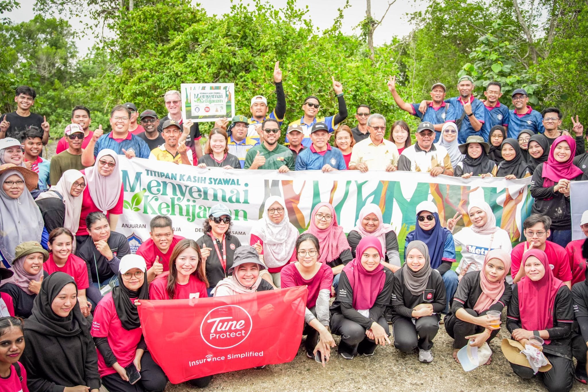 One of the key highlights of the year was Tune Protect’s collaboration with Harian Metro under the Titipan Kasih Syawal Harian Metro programme, held on 16 April 2025 at Pantai Bumi Hijau, Kampung Banting, Sabak Bernam, Selangor. The initiative brought together a total of 84 volunteers from Tune Protect and 20 volunteers from Harian Metro, alongside local leaders, authorities and residents, to address environmental challenges faced by the coastal community.