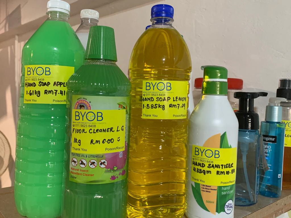 BYOB Ampang is a detergent refilling station, providing biodegradable and organic detergents under The Life Refill Centre Plt.