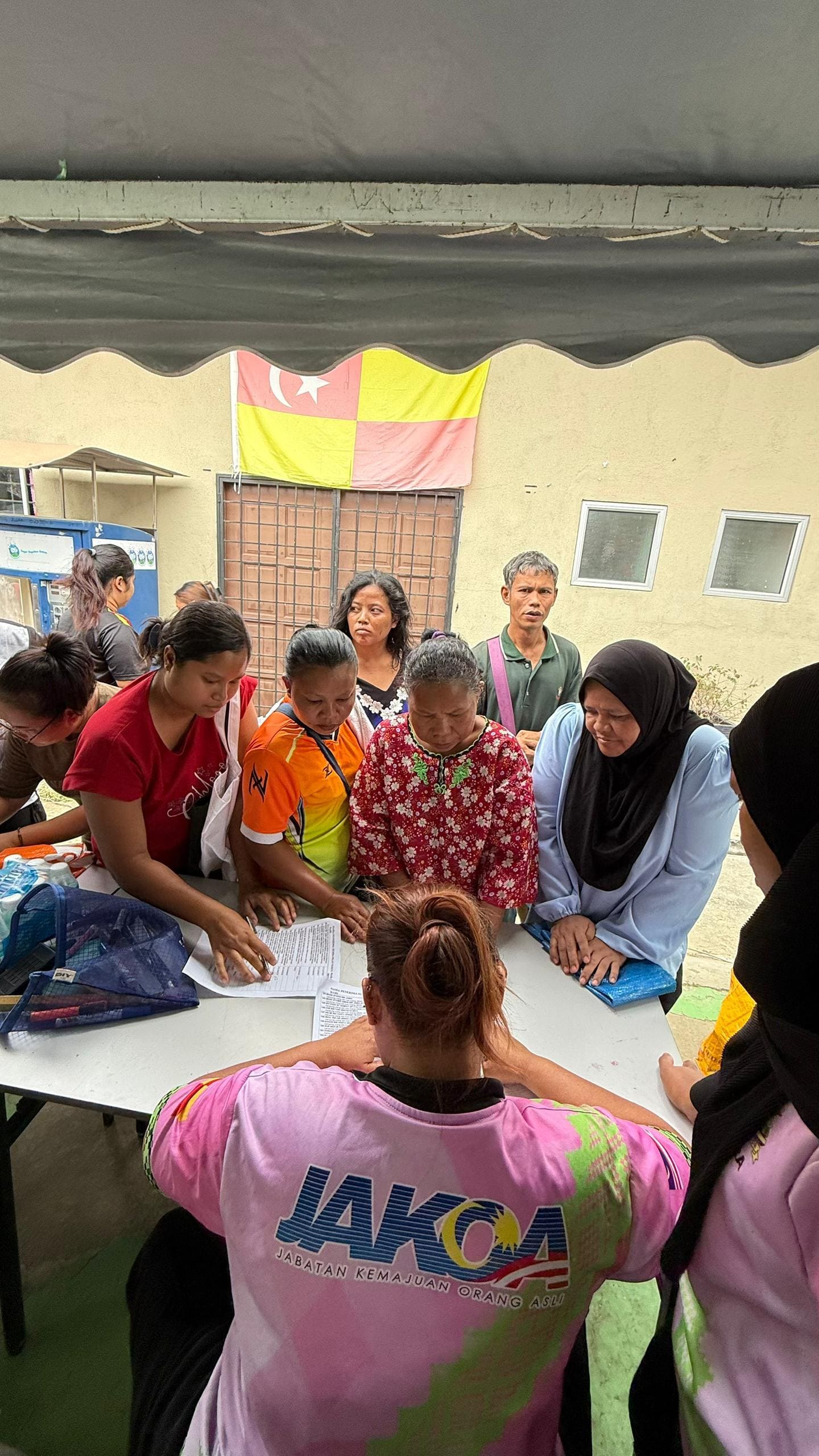 The programme began with collaborative packing efforts, where volunteers prepared dried goods such as rice, cooking oil, snacks and beverages. These supplies were then loaded for transport and later distributed to the Orang Asli families gathered at the community centre.