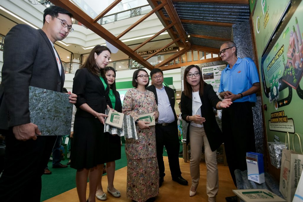 - (Second from right) Terrynz Tan leading the VIP and media walkthrough at the recycling journey showcase