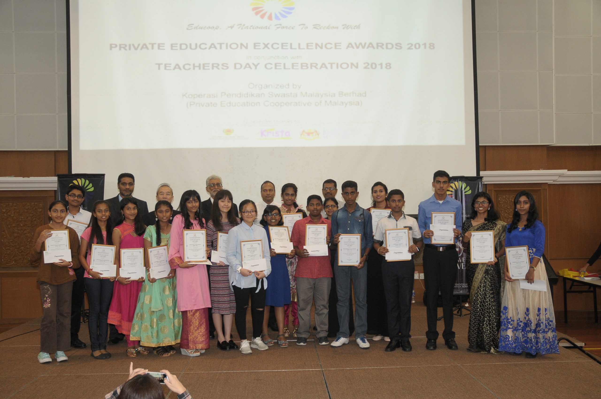 In conjunction of the recent Teachers day celebration, the Private Education Cooperative of Malaysia, held an award ceremony for students that are high achievers, in this event, the students received certificate and cash.