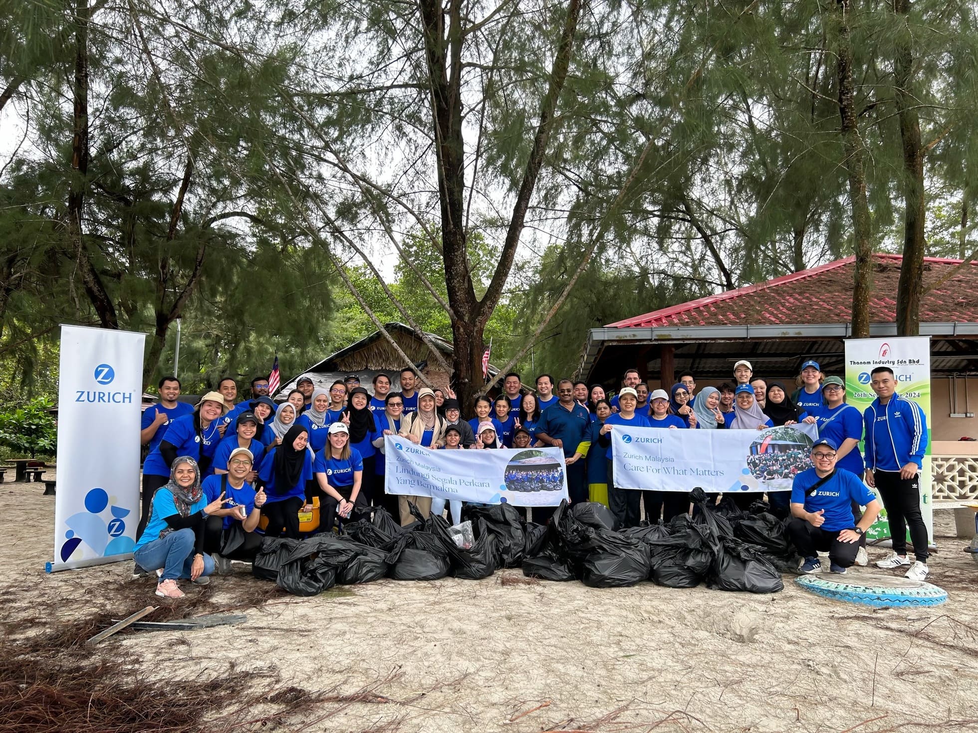 Zurich Malaysia employees participated in a beach clean-up initiative at Pantai Cunang, Tanjung Sepat